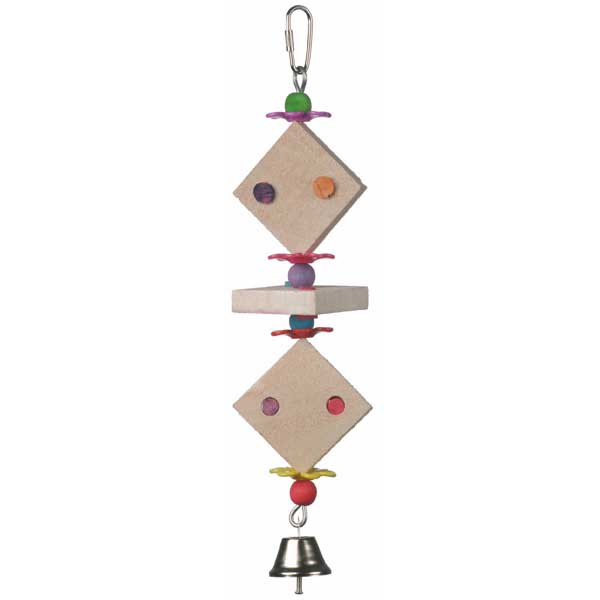 Your bird will tweet, sing and dance it's way to bliss on this balsa toy. Colorful cork is wedged into slices of soft balsa and threaded on a solid wire. Listen for the jingle of the bell to know this toy is bringing your bird joy.