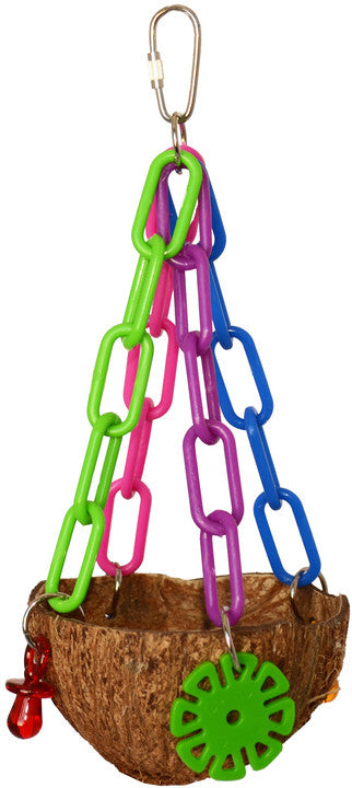 Your small to medium sized birds will enjoy swinging while eating out of the Coco Treat Cup.