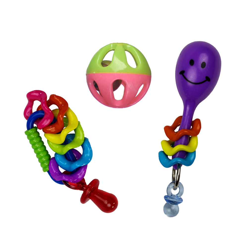 Bundle features 3 foot toys that are fun to toss, roll and explore! Great for fun both inside and outside the cage!