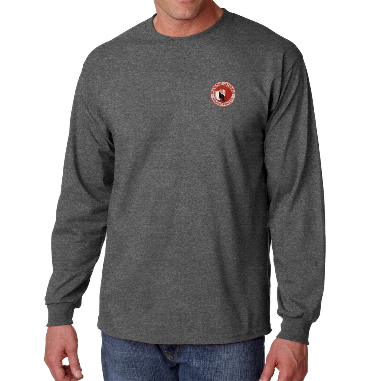 Gildan Ultra Cotton Long Sleeve T-Shirt with embroidered Phoenix Landing logo